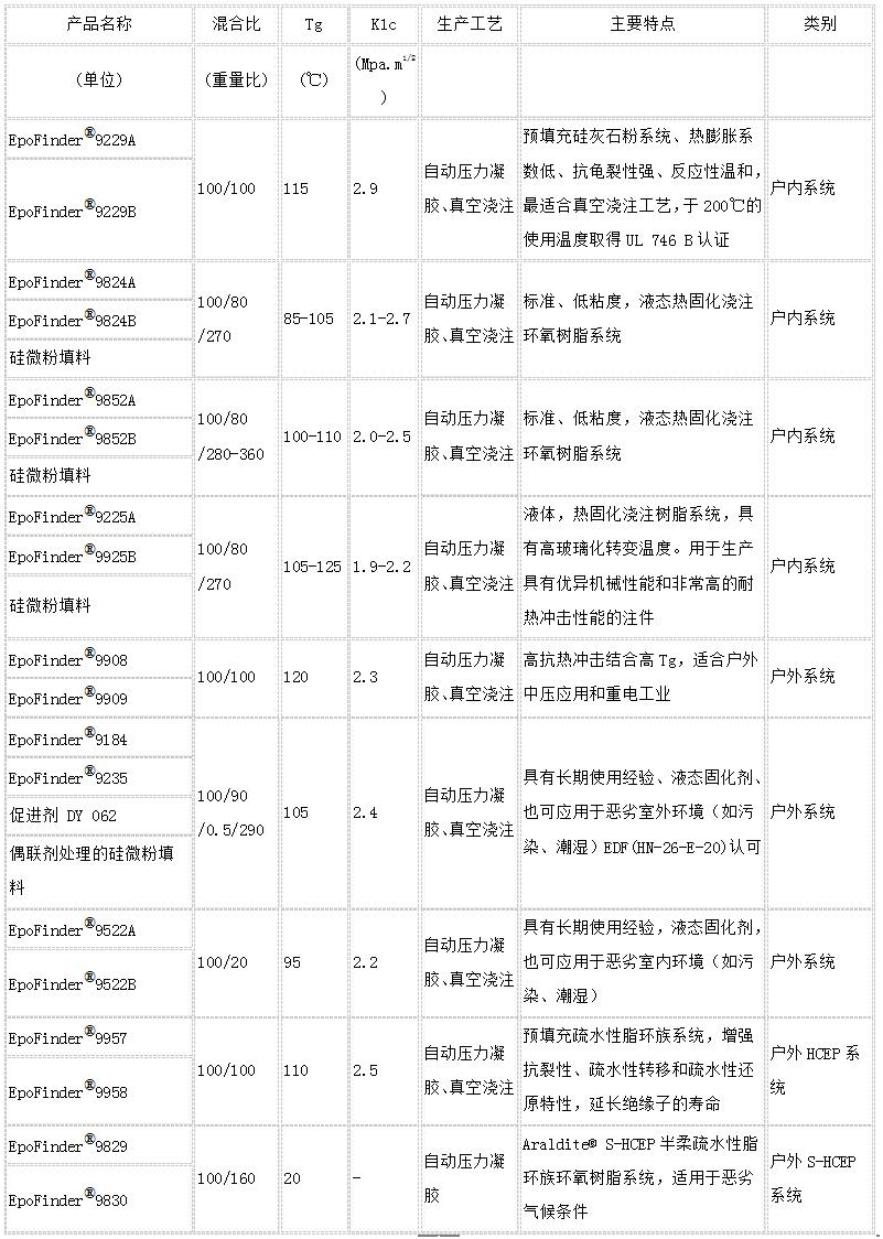 疏水性脂環(huán)族環(huán)氧體系,具有優(yōu)異的耐候性,可降低漏電電流,提高絕緣子的可靠性,延長使用壽命。